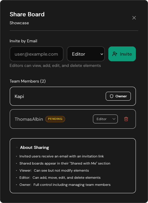 Collect ideas, align on directions, and evolve visuals together all in one place. Share curated boards with clients and teammates so feedback comes faster and decisions get easier.
