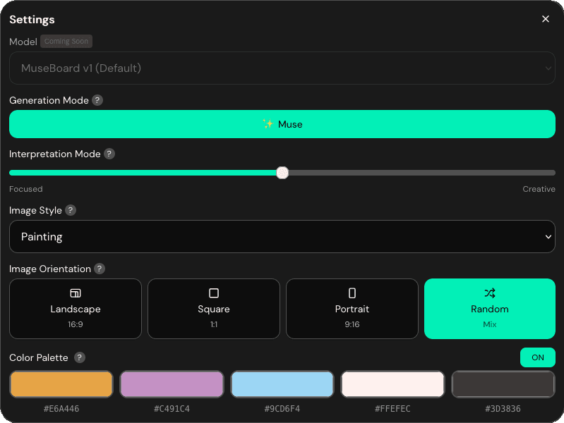 Take control of your creative vision by fine-tuning the AI's interpretation, set precise creative boundaries, and define your color palette to generate images that perfectly match your artistic direction.